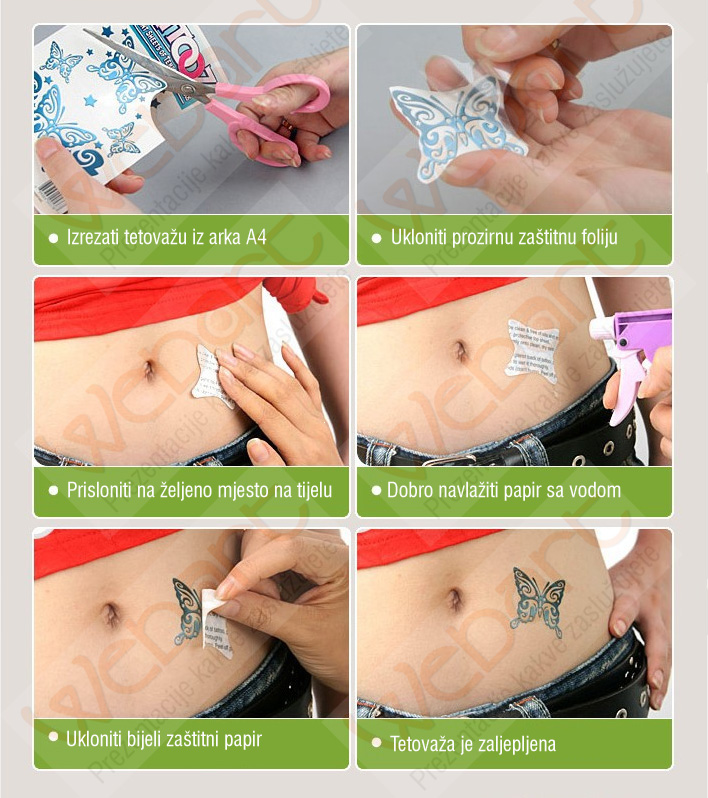 Kao tetovaža može poslužiti bilo koji Vaš motiv do veličine A4, što je i ujedno minimalna količina narudžbe.