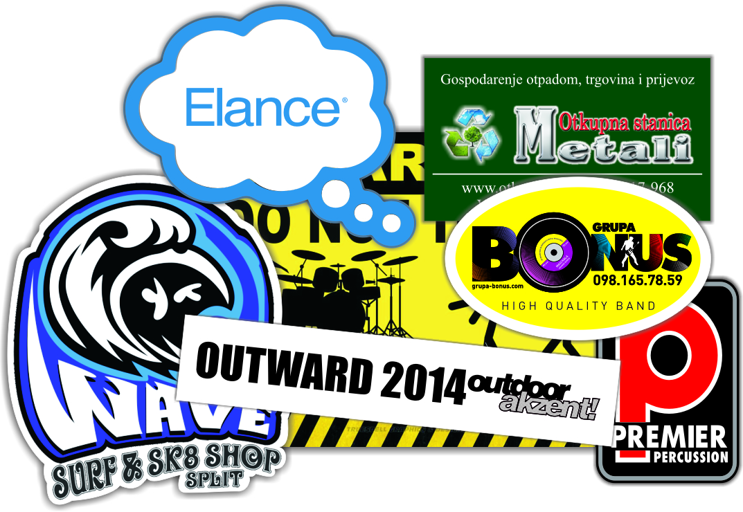Naljepnice radimo po narudžbi različitih dimenzija i oblika (krug, oval, kvadrat, zvijezdasti, … ).